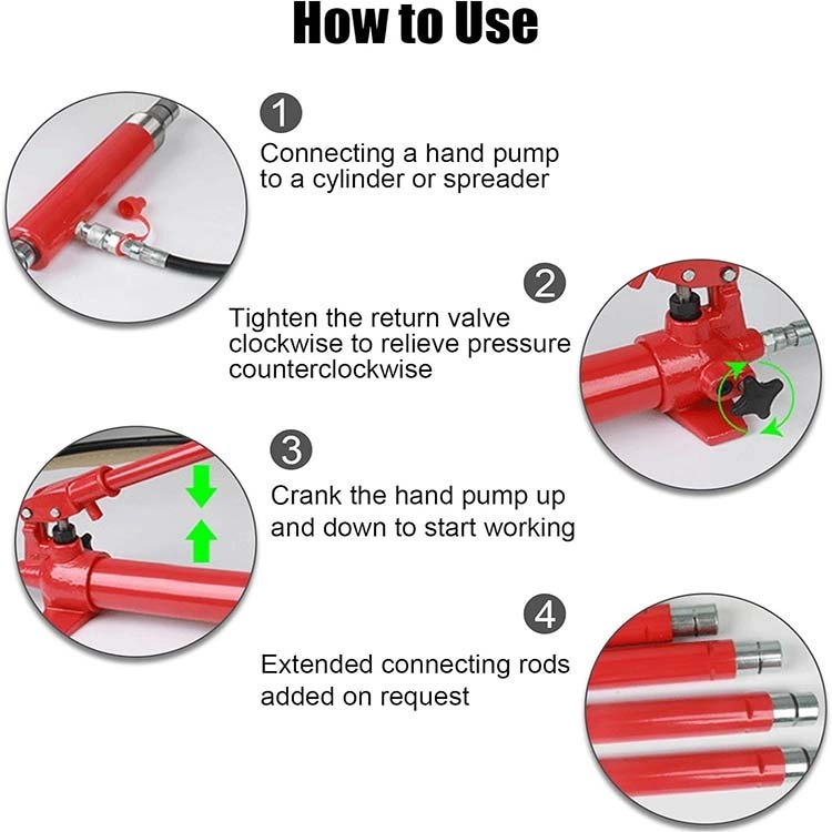 Việc sử dụng kích thủy lực di động thường bao gồm các bước sau:
